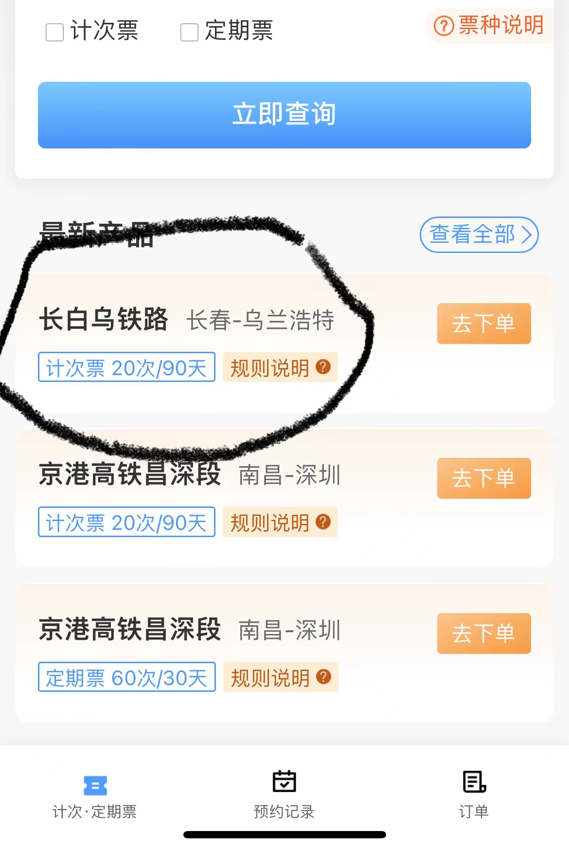 记者登录中国铁路12306手机APP上发现,只要在首页上选取计次·定期票,排在第一位的就是长白乌铁路。