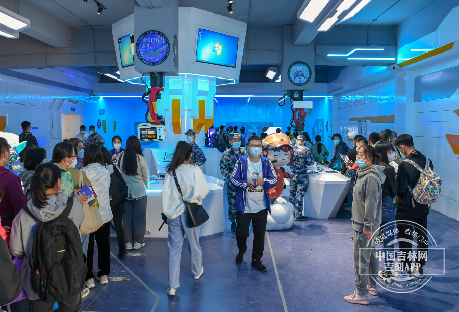 在“2022空军开放活动•长春航空展”的吉林主题馆、航空工业馆、中国民航无人机馆、航天科普馆、空军主题馆、沉浸式体验馆6个室内展馆,以及空军装备展区、通航飞机展区等室外展区,到处可见尖端元素。在这里可以了解最新航空知识、亲身体验飞行模拟器“翱翔”天空的感觉、感受模拟跳伞的刺激……