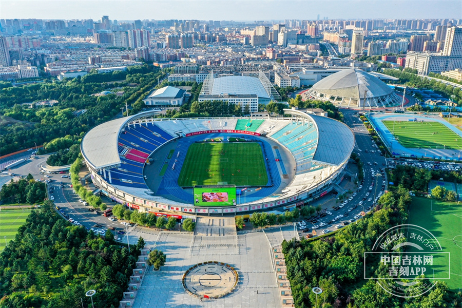 航拍镜头下的长春亚泰主场——长春体育中心体育场。