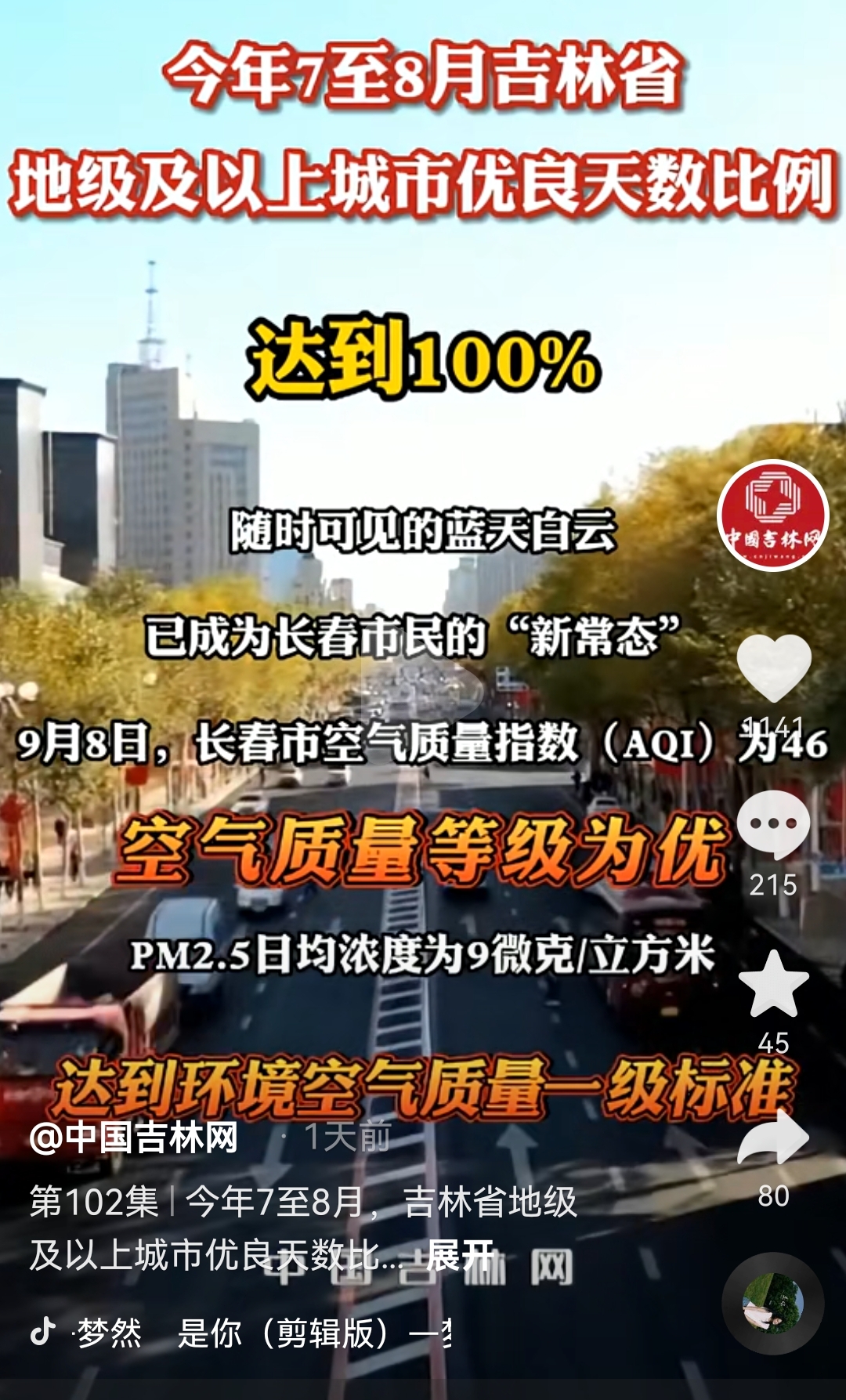 其实,随处的蓝天白云,已经成为吉林省天气的新常态!