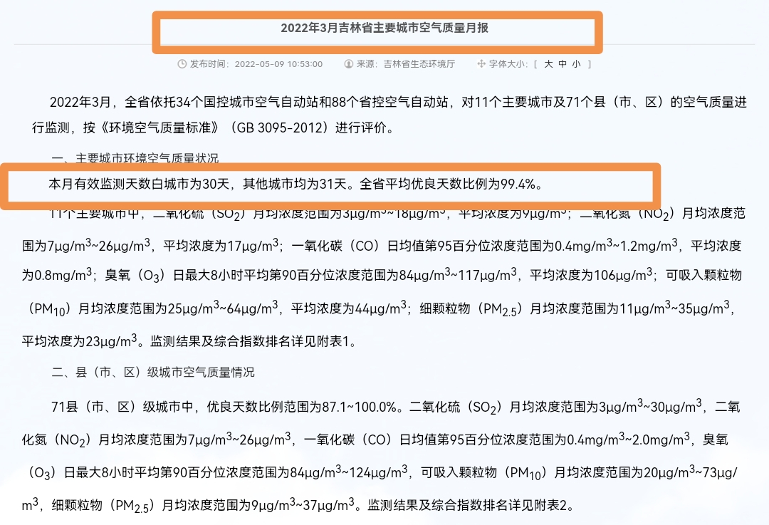 可以说,吉林省的天气质量,全年都在线,并持续向好!