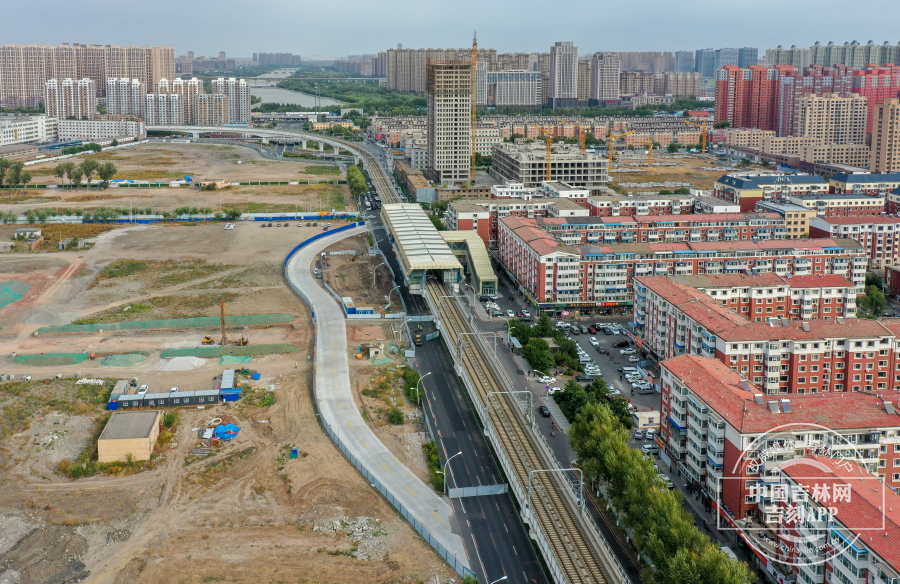 无人机航拍长春轻轨4号线东新路站。