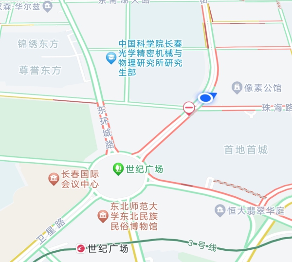 国庆假期,长春卫星路转南四环路(世纪广场)方向匝道被拆除,途经车辆需要沿匝道驶入南四环路,之后左转进入世纪广场。8日7时40分至8时30分,中国吉林网记者在世纪广场及卫星路区域观察早高峰车辆通行情况。净月大街至世纪广场、世纪大街至世纪广场、东环城路至世纪广场车辆均比较拥堵,车行缓慢。