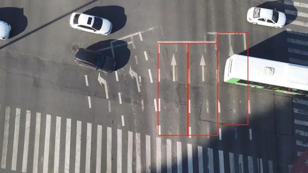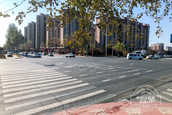 11月4日,中国吉林网来到了盛世大路与南湖中街交会处。通过航拍画面可以看到,在盛世大路由东向西的这个方向,除了有两条左转的等待区,还新增了三条直行等待区。