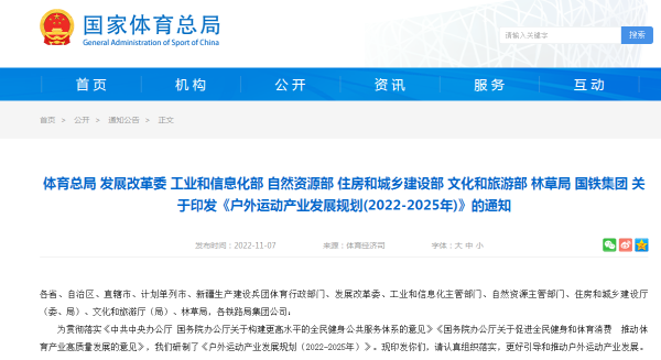 日前,国家体育总局、国家发展改革委等多部门共同印发了《户外运动产业发展规划(2022-2025年)》(以下简称《规划》)。