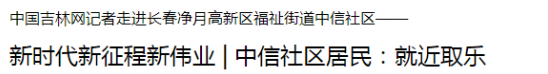 深入长春净月高新区中信社区采访的中国吉林网全媒体新闻中心记者李志明说:“在中信社区蹲点采访的几天内,我们见到了不同年龄段、不同需求的社区居民,也通过蹲点、走访,了解到了关于他们的点滴生活。彼时,‘社区无小事’这几个字的定义在心里又有了重新升华。”