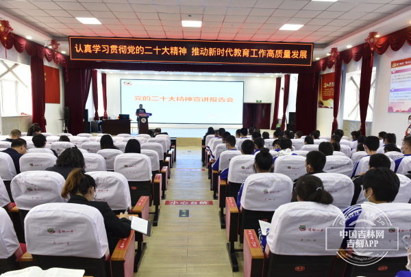 走进通化市通钢一中报告厅,中国吉林网记者看到学校的老师们、同学们整齐排坐,正在认真聆听党的二十大报告团的宣讲,深刻领会过去五年和未来十年的伟大变革,深受鼓舞。