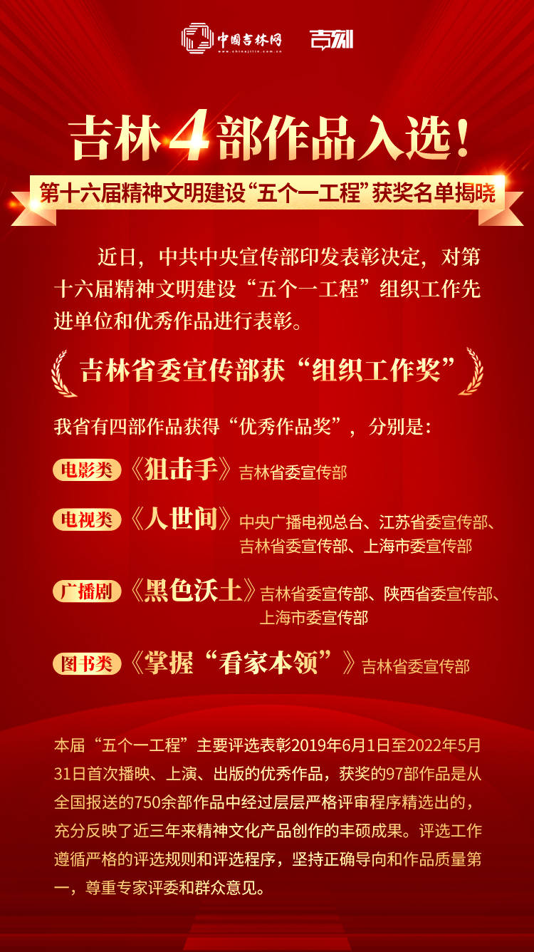 上榜丨吉林4部作品入选!第十六届精神文明建设“五个一工程”获奖名单揭晓