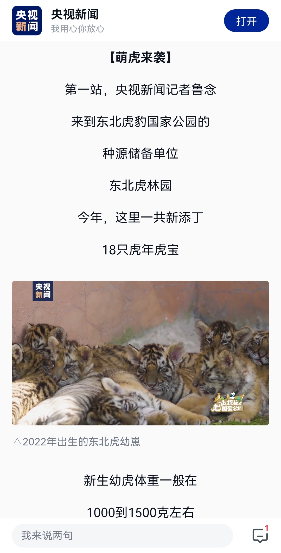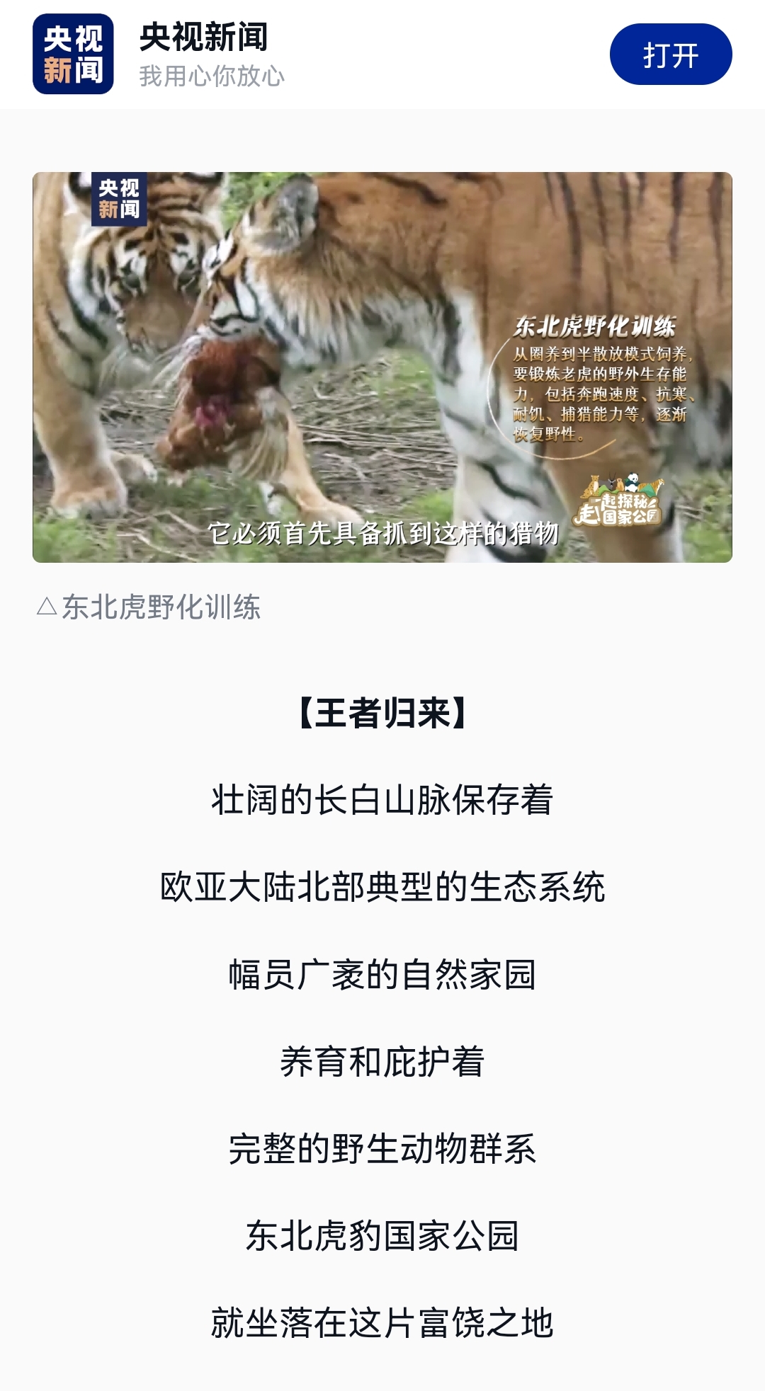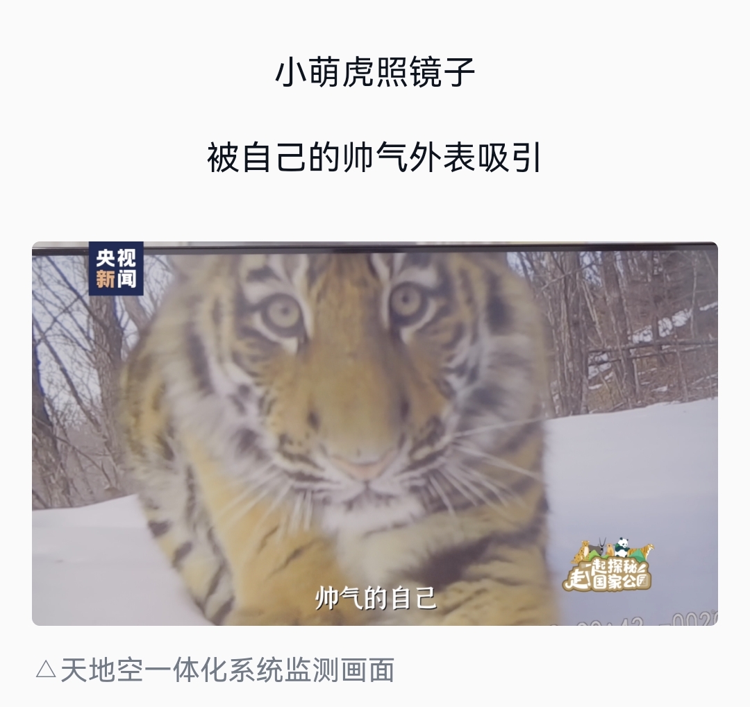 央视新闻更是将栏目组搬到东北虎国家森林公园,央视新闻《走!一起探秘国家公园》系列节目将带网友深入,东北虎豹国家公园核心区,一起探寻森林之王的风采。