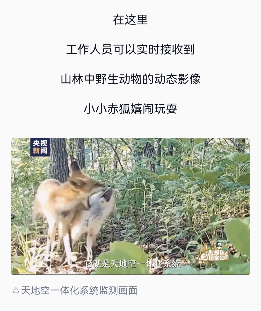 在这里,工作人员可以实时接收到,山林中野生动物的动态影像,小小赤狐嬉闹玩耍。