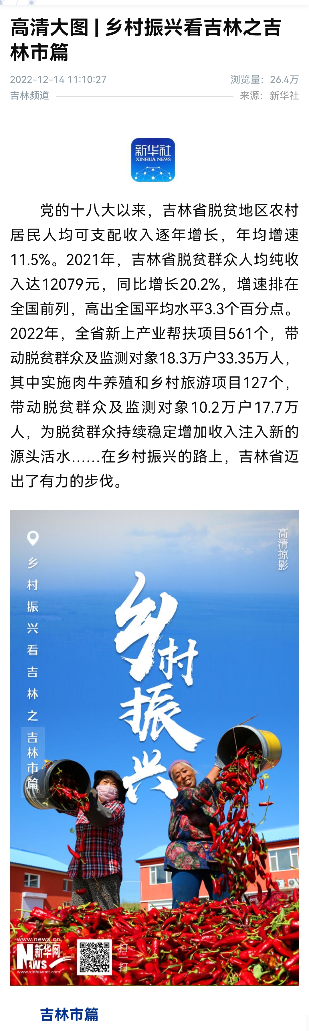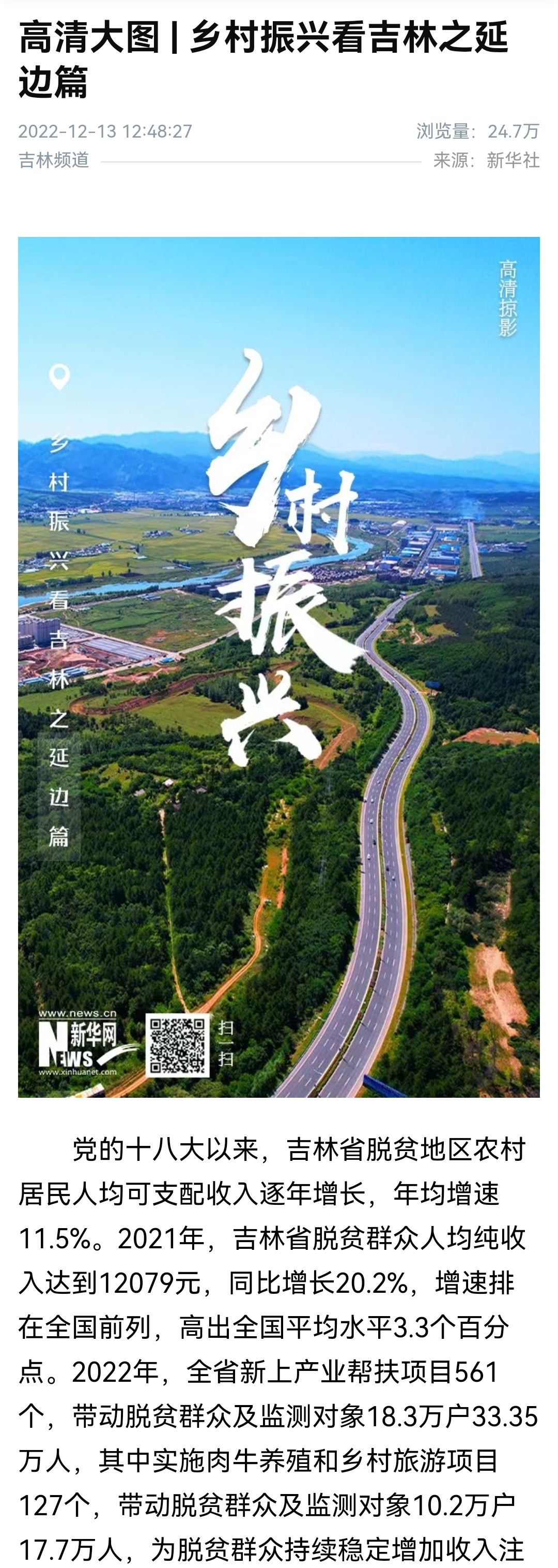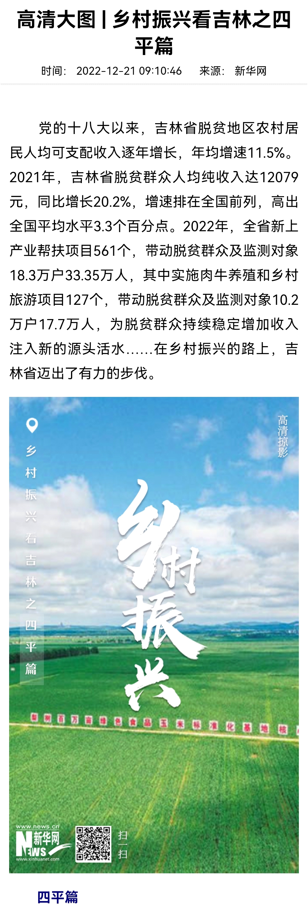 连日来,新华网策划专题报道《高清大图 | 乡村振兴看吉林》,长春、吉林、延边、四平、辽源、白城、通化、松原……报道中,吉林省多个县市高清大图,展示了各地乡村振兴新景新貌,为吉林的冰天雪地美景再添绚丽一笔。