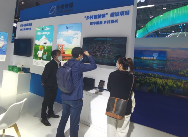 在第十八届中国(深圳)国际文化产业博览交易会现场,走进吉林省展区,映入眼帘的就是吉视传媒股份有限公司的展位,两个一体化大数据可视化页面让人瞬间眼前一亮,一个页面里立体化展现了吉林省乡村的人房、火情、水利、安防、治理等实时分析数据,另一个页面展示的是5G+智慧农业体验区,科技感十足,大家纷纷驻足围观。