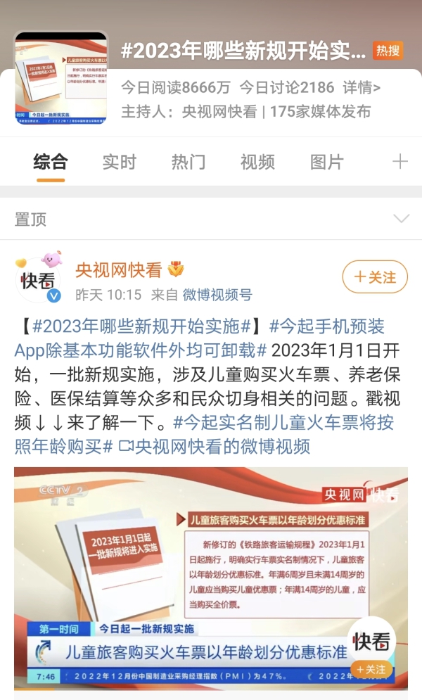 比如说涉及儿童购买火车票、养老保险、医保结算,总之一批新规和民众切身相关,大家要仔细留意。