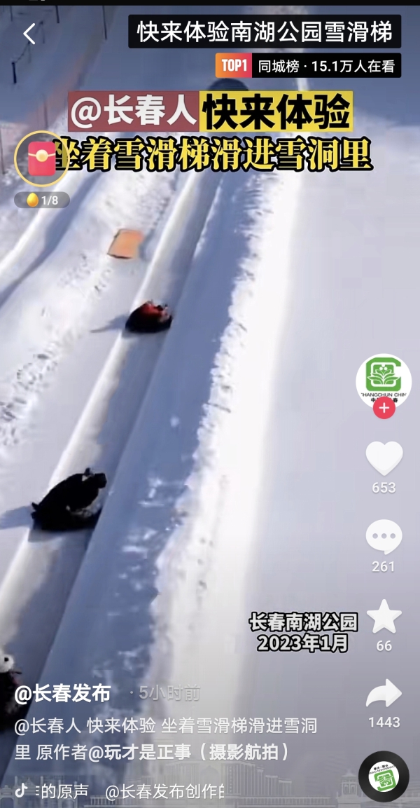 2023年,咱大长春的南湖公园冲上了抖音同城榜的TOP1,浏览量达到400多万了。