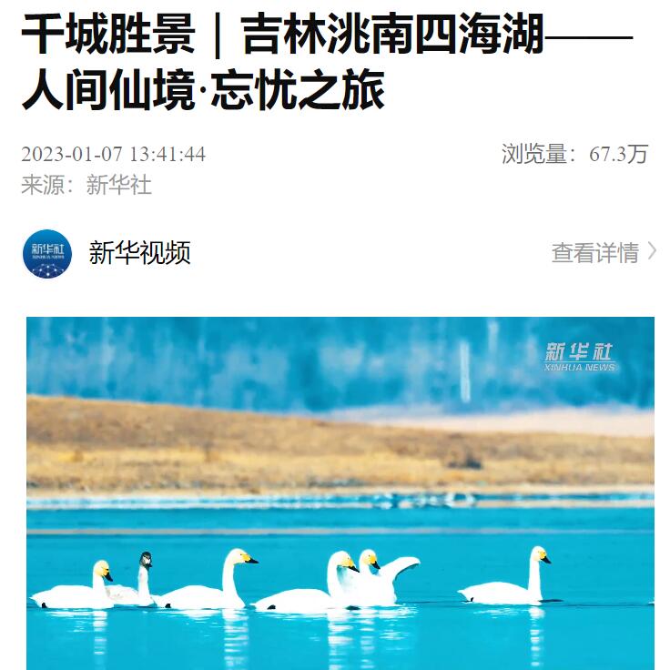 1月7日,休息日里,新华社关注的目光,落在了吉林洮南四海湖,这里独特的自然风光,让人一眼难忘。
