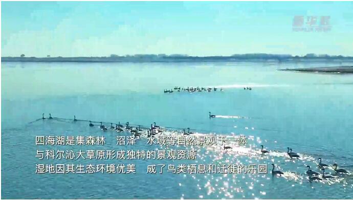 四海湖是集森林、沼泽、水域等自然景观于一体,与科尔沁大草原形成独特的景观资源。湿地因其生态环境优美,成了鸟类栖息和迁徙的乐园。
