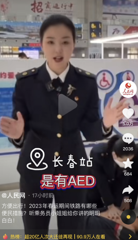 小吉了解到,2023年春运期间为方便广大旅客出行,长春站准备了一些便民措施,其中有AED(除颤仪)。