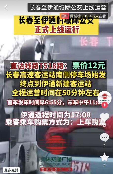 还要告诉长春和伊通的市民朋友们一个好消息。长春至伊通的城际公交已于6日正式上线运行。