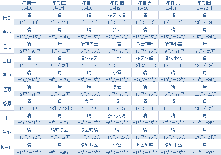 1月16日,长春市迎来了一个大晴天,今天也是新一周的开始,长春市的最高气温达到-9℃。
