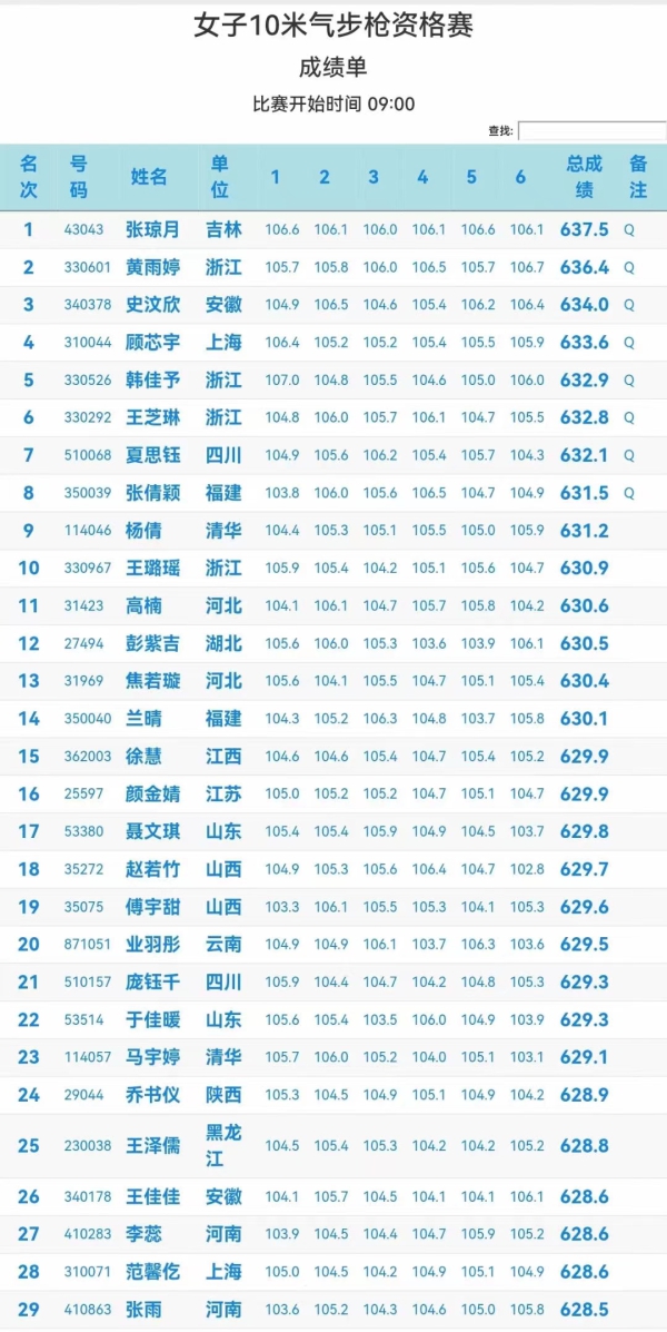 女子10米气步枪资格赛的637.5环是什么概念呢?世界纪录是2022泛美锦标赛的635.3环,也就说,这个成绩超过了世界纪录2.2环。当然,也超过了全国纪录3.1环。如果我们看东京奥运会,当时资格赛排名第一的是挪威名将杜斯塔德打出的奥运纪录632.9环,而杨倩当时资格赛的成绩是628.7环。可以看到,637.5环的成绩,完爆奥运会众名将!