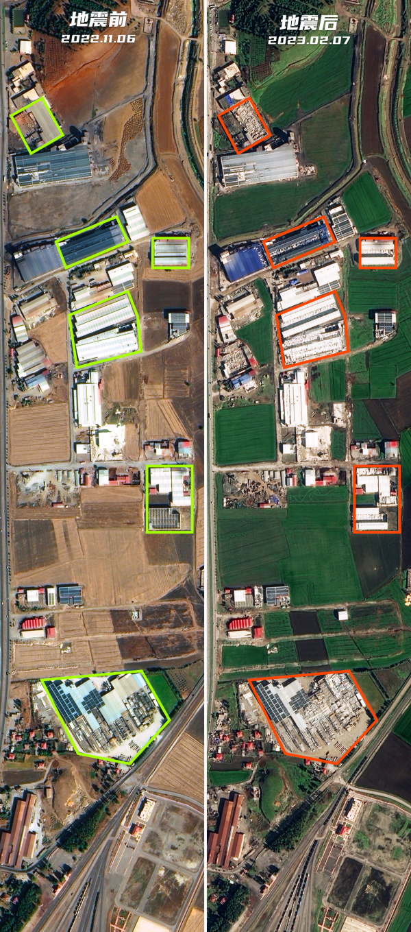 2月6日,土耳其东南部地区接连发生两次强烈地震,造成重大人员伤亡和财产损失。强震发生后,灾区大量建筑倒塌,城市损毁严重。“吉林一号”宽幅01A星拍摄了地震发生前后土耳其城市的对比。