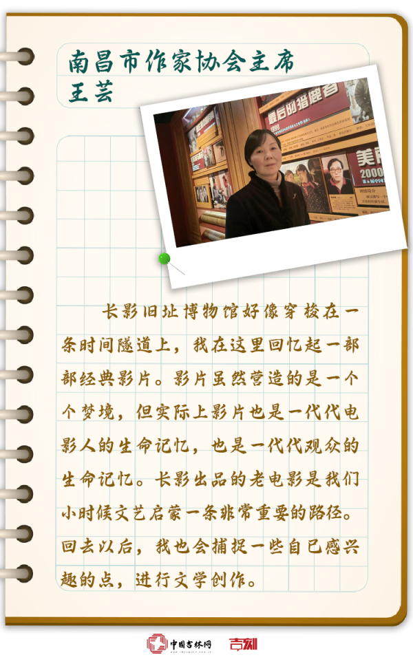 南昌市作家协会主席王芸:长影旧址博物馆好像穿梭在一条时间隧道上,我在这里回忆起一部部经典影片。影片虽然营造的是一个个梦境,但实际上影片也是一代代电影人的生命记忆,也是一代代观众的生命记忆。长影出品的老电影是我们小时候文艺启蒙一条非常重要的路径。回去以后,我也会捕捉一些自己感兴趣的点,进行文学创作。