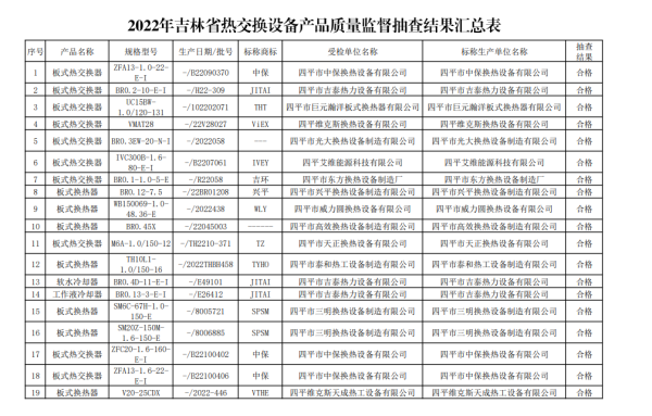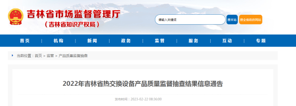 据悉,2022年3季度吉林省市场监督管理厅组织开展了热交换设备产品质量监督抽查,共抽查17家生产者生产的30批次产品。经检测,未发现不合格产品。本次抽查依据《中华人民共和国产品质量法》《产品质量监督抽查管理暂行办法》的规定。
