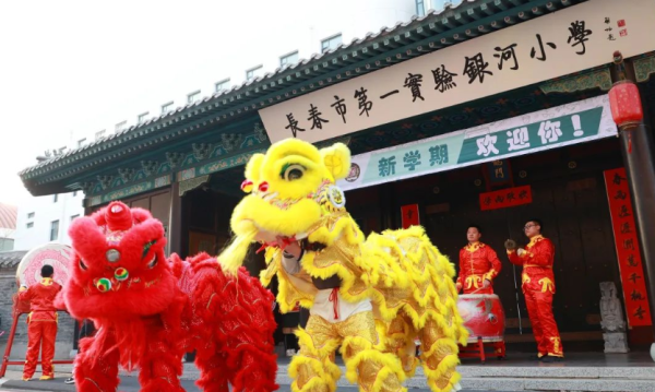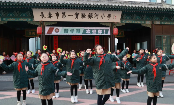 27日,长春市第一实验银河小学的学生们踏着春的步伐,迎来了新学期。