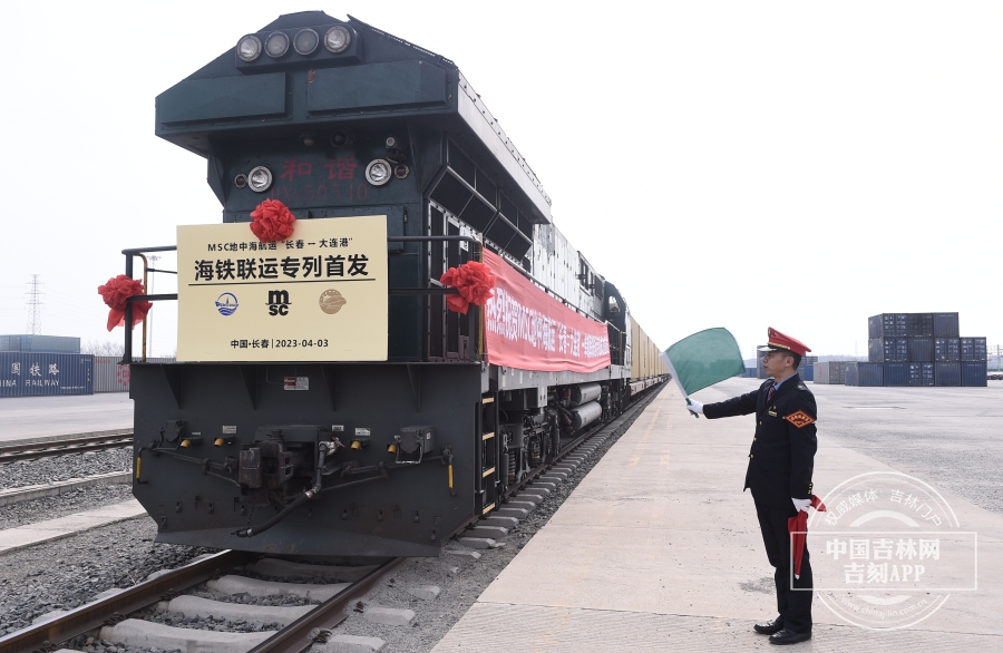 4月3日,长春兴隆铁路口岸,“长春-大连港”一单制海铁联运专列首发