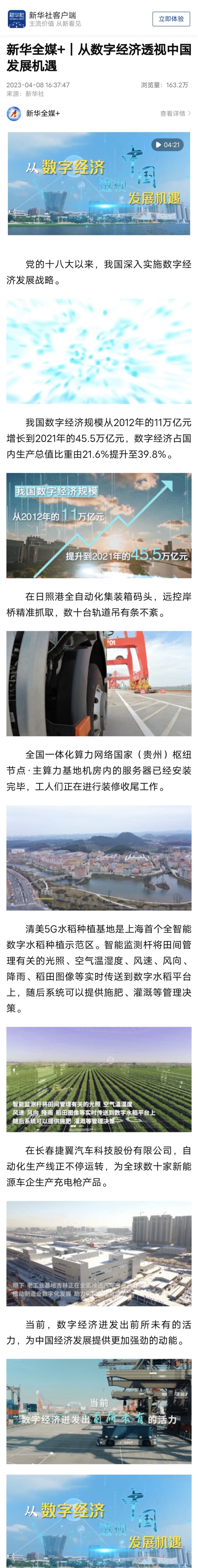 正如该文章所说,当前,数字经济迸发出前所未有的活力,为中国经济发展提供更加强劲的动能。