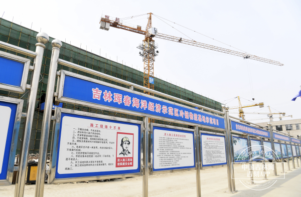 在珲春海洋经济功能食品产业园项目现场,各类机械设备正在开足马力工作。
