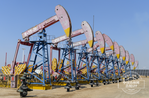 在吉林油田新立1号大平台分布式光伏示范项目现场,一排排传统抽油机正在作业。