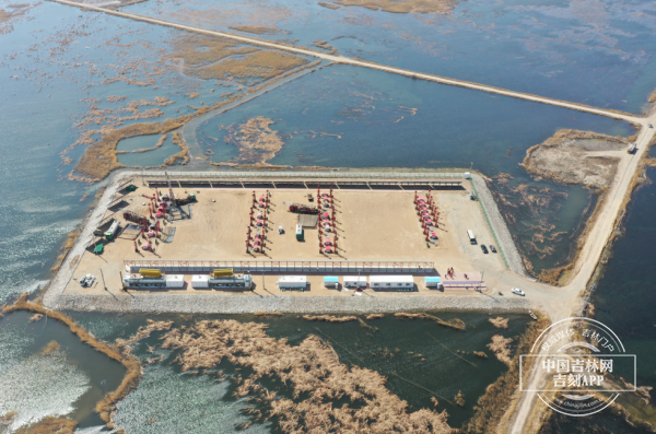 在这片开始“复苏”的美丽湖畔,吉林油田新立采区大井丛16号平台上的液压式直驱型抽油机正在不知疲倦地工作,机器往返作业的轰鸣声与风声和水声仿佛正在合奏一首动听的旋律。