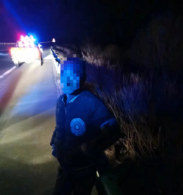 2023年4月17日21时20分许,朋友圈一条“寻人启事”引起吉林省公安厅高速公路公安局吉林分局巡逻一大队民警的关注:“此人于今天早上在蛟河德仁医院走失,上身穿黑色棉衣,患有脑血栓,走路不利索,语言表达不清。如果有看到此人者,请与我联系,电话:138****1120。求转发谢谢。”这时,民警也接到指挥中心转警:有过路群众报警称珲乌高速公路珲春方向307至308公里之间有一个人躺在高速公路路边。