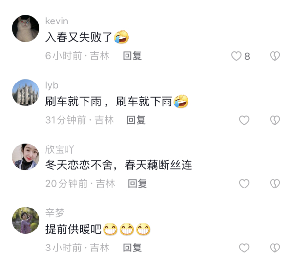 网友们也很无语,甚至有网友吐槽说,这样持续降温是否要提前供暖了。