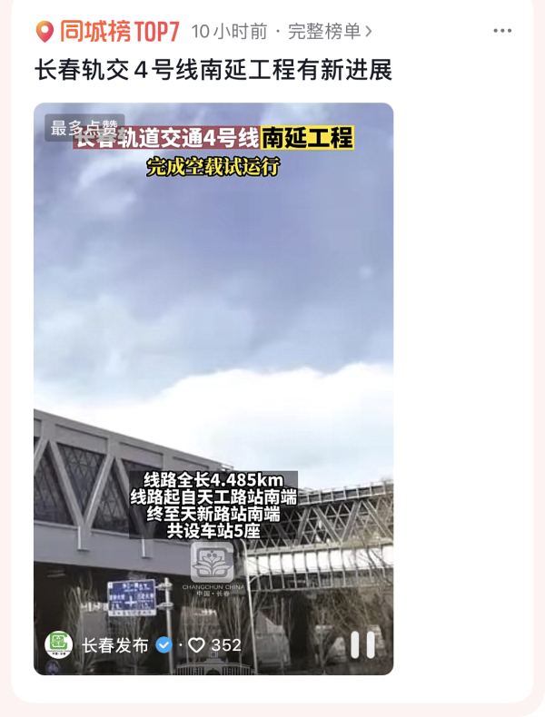 虽然春天在哪里暂时不知道,但长春轨道交通4号线南延工程却有了确定的消息。