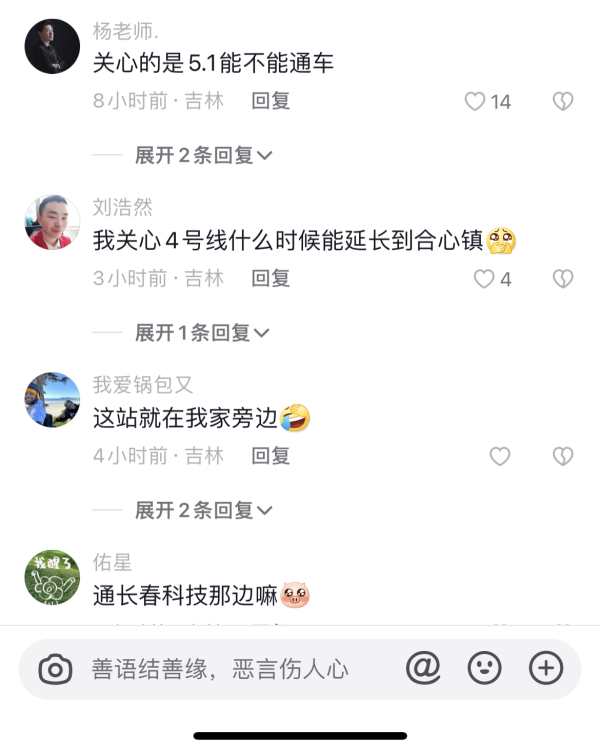 网友也是喜大普奔,不但纷纷点赞,也猜测起家门口是不是又通了新车。