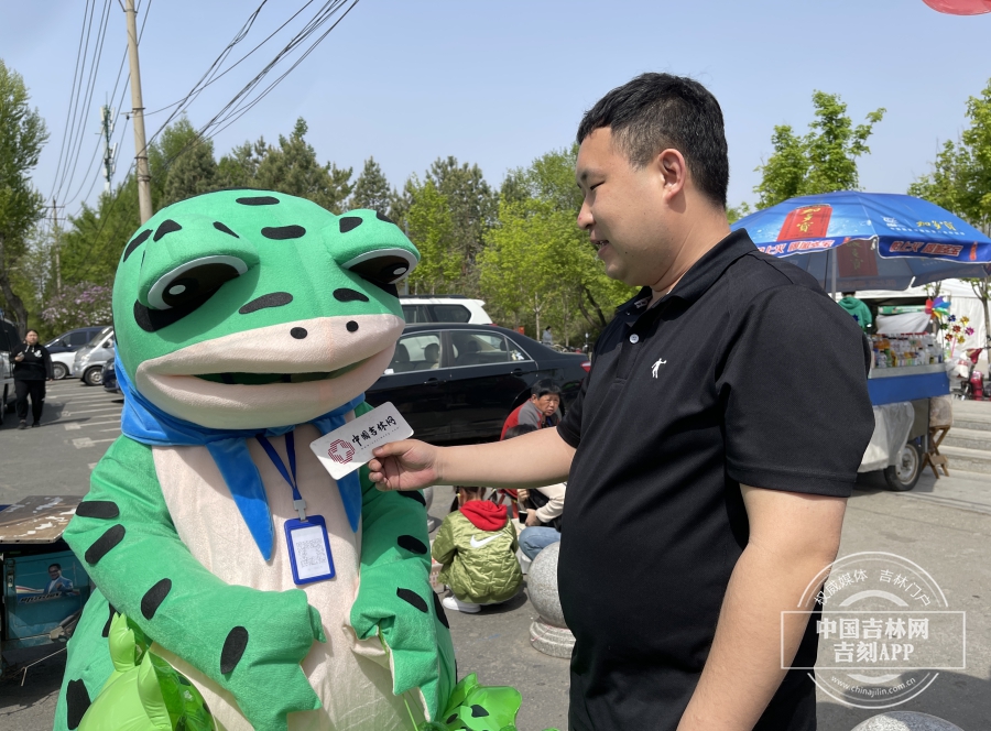 “妈妈你看,青蛙妈妈在卖小青蛙。”一名小女孩指着身着青蛙玩偶的工作人员稚气地对她妈妈说道。来到长春公园南门,气球、青蛙玩偶、棉花糖......周围站满了小朋友们,他们在大人的陪同下绽放着最美的笑容。