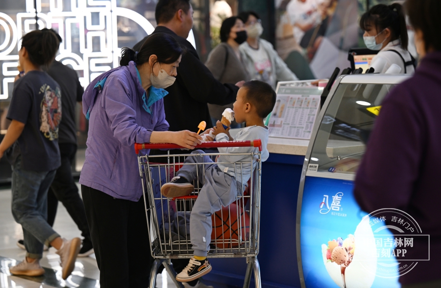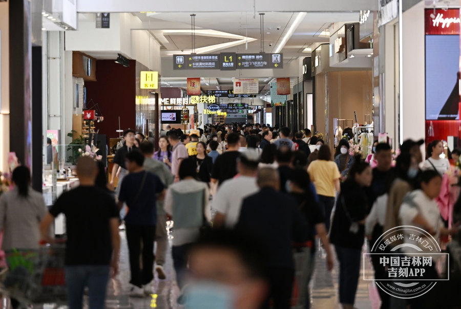 在长春市西南部,欧亚卖场广阔的停车场里停满了车辆。“排队进来找车位用了快一个小时。”长春市民刘女士说。记者看到,商场里的祈福树上挂满卡片,不少市民在上面写下假期祝福,还有网红飘带,不时有市民拍照打卡,很多收银台前都排着长队。