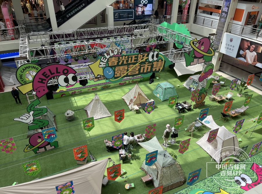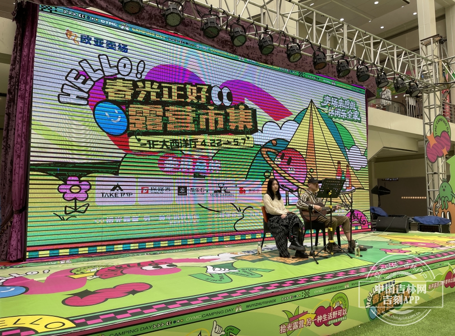 “给你我平平淡淡的等待和守候,给你我轰轰烈烈的渴望和温柔。”人还未到近前,带着沙哑和磁性的音乐便已缭绕在耳畔。在欧亚卖场大西洋厅舞台上,一名男子弹着吉他轻轻地唱着。方形的、圆锥形的、长方形的帐篷,各种户外的小桌椅,在舞台下呈扇形分布着,在这片商场人流中构建了一片“绿洲”。逛累的市民三三两两,或是坐着,或是依偎在一起,感受着一隅的清宁。“这不夏天快到了,我准备买点露营的装备,听说这里在做活动,和家人来看看,没想到还有节目,真是不虚此行啦!”市民张先生搂了搂女朋友幸福地说道。