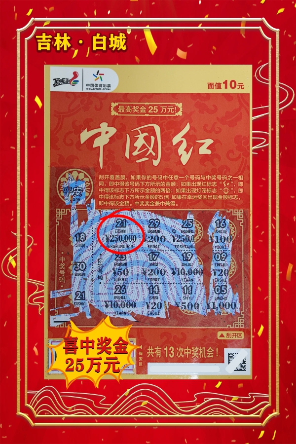 近期,位于白城市洮北区兴文路3号楼门市的2211011206号体彩代销点传来喜讯——一位购彩者中得顶呱刮10元面值“中国红”一等奖25万元。5月4日青年节这天,这位来自白城的幸运购彩者李先生(化姓)来到了吉林省体育彩票管理中心办理兑奖手续。