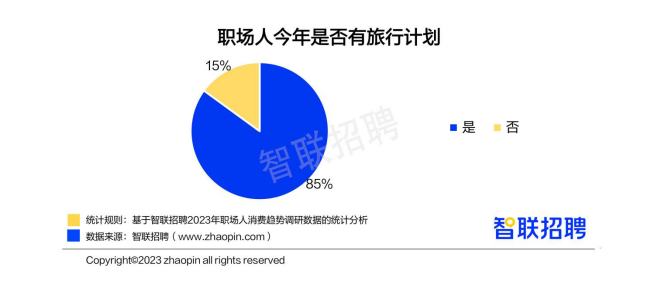 报告显示,85%的职场人表示,今年已经旅游或有旅游打算。金融从业者想旅游的占比91.7%,排名各行业之首。其次是交通/运输/物流/仓储行业职场人,91.3%有“世界那么大我想去看看”的打算。