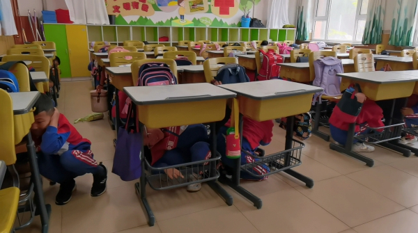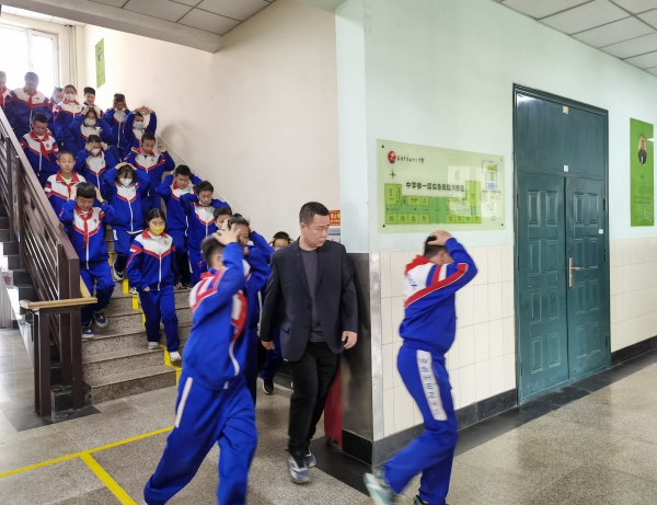 上午9时30分,地震应急演练正式开始。学校广播拉响了地震应急警报,全校师生按照地震应急演练预案,快速进行地震紧急避险,开展地震逃生演习。2000多名学生们在老师和工作人员的引导下,用时不到3分钟,迅速疏散到操场。整个演习活动紧张有序,有条不紊,没有发生任何相互推挤或踩踏事故。