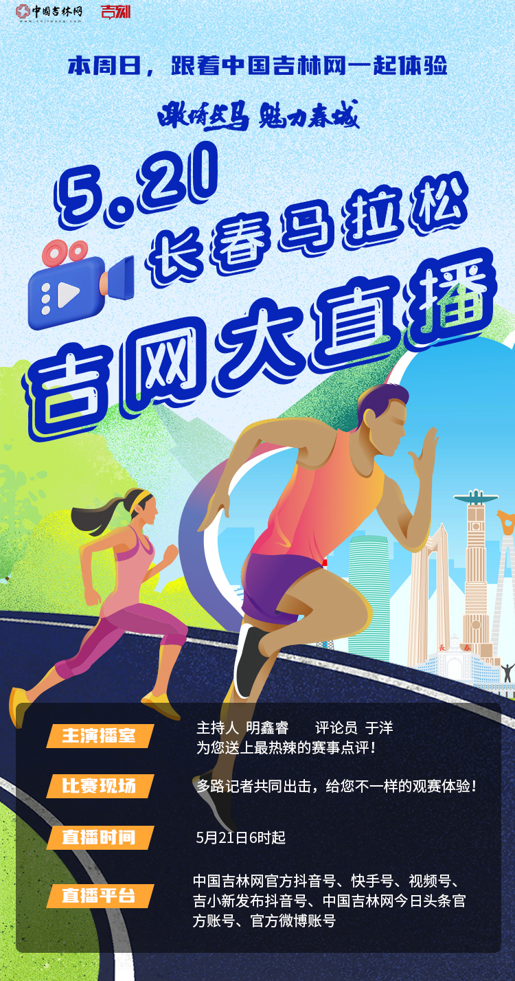 21日当天6时开始,吉刻APP及中国吉林网官方抖音号、快手号、视频号、吉小新发布抖音号、中国吉林网今日头条官方账号、官方微博账号,中国吉林网各平台将并机推出吉网“长马大直播”,全程为网友视频及图文直播报道2023长马盛况。