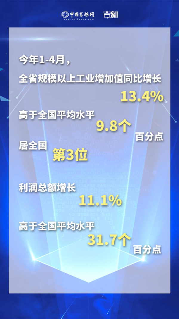省工信厅运行监测协调办公室主任任立明介绍:今年1-4月,全省规模以上工业增加值同比增长13.4%,高于全国平均水平9.8个百分点,居全国第3位,利润总额增长11.1%,高于全国平均水平31.7个百分点。