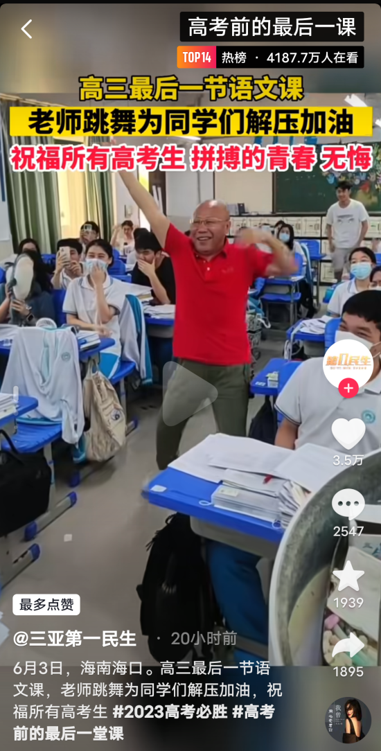 甚至,还有一位老师为自己的学生送上一段“舞蹈”,为自己学生减压加油,希望同学们“舞出自己新人生”。