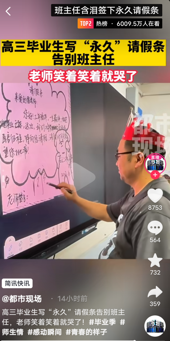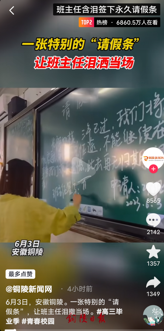 每一年这个时候,很多高三同学们也会在这最后一课写上“请假条”,请老师“签字”,以此表达对高中三年学习生涯的不舍。来,看看今年的“请假条”吧。