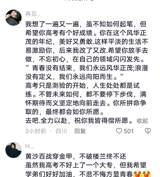 高考在即,也有不少知名人士送上了他们对学子的祝福。