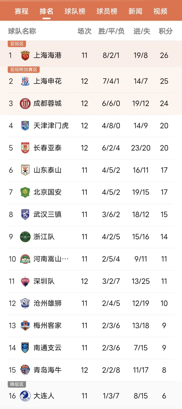本轮战罢,亚泰的联赛积分已经达到20分。