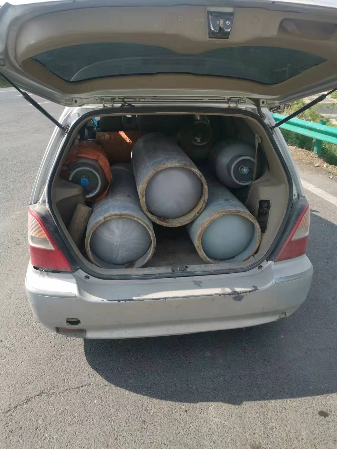 原来,车里大大小小竟拉载9个液化气罐,驾驶人连忙解释到都是空罐,里面没有气了。经过仔细检查,虽然大多数罐内燃气已经用尽,但还有两个罐体里面还有残留,拧开阀门还能闻到一些液化气的味道,还有一个罐体阀门是打开的,存在很大安全隐患。鉴于此情况,民警立即要求其将罐体卸到安全区域,并联系正规危险品运输车转运。此时驾驶人非常不理解空罐为什么还要危险品运输车运输,认为空罐很安全,不必这么大惊小怪,自己的行为顶多算客货混载。